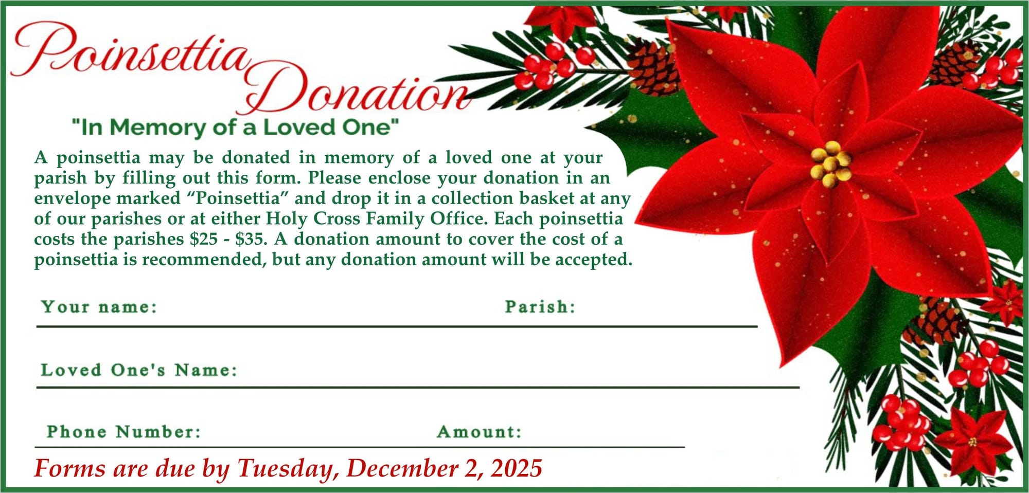 POINSETTIA DONATIONS: Print out & fill out the form below. Checks can be made out to each parish Ladies Sodality.