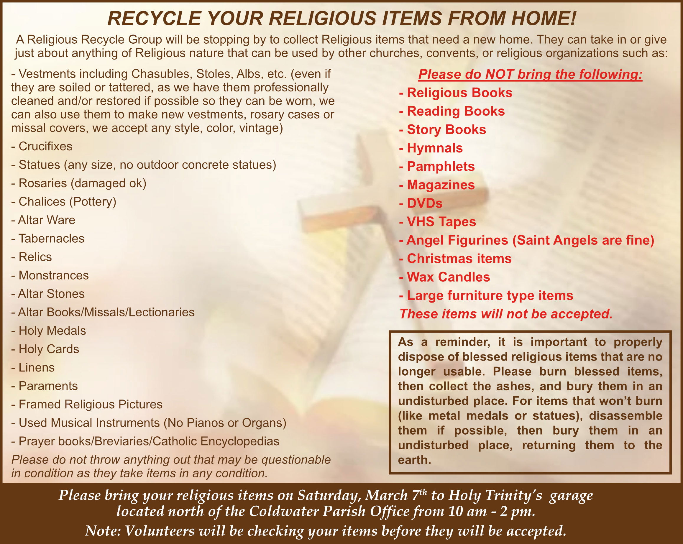 Please only bring items off of the approved list below. The organization will only accept these items. Thank you!