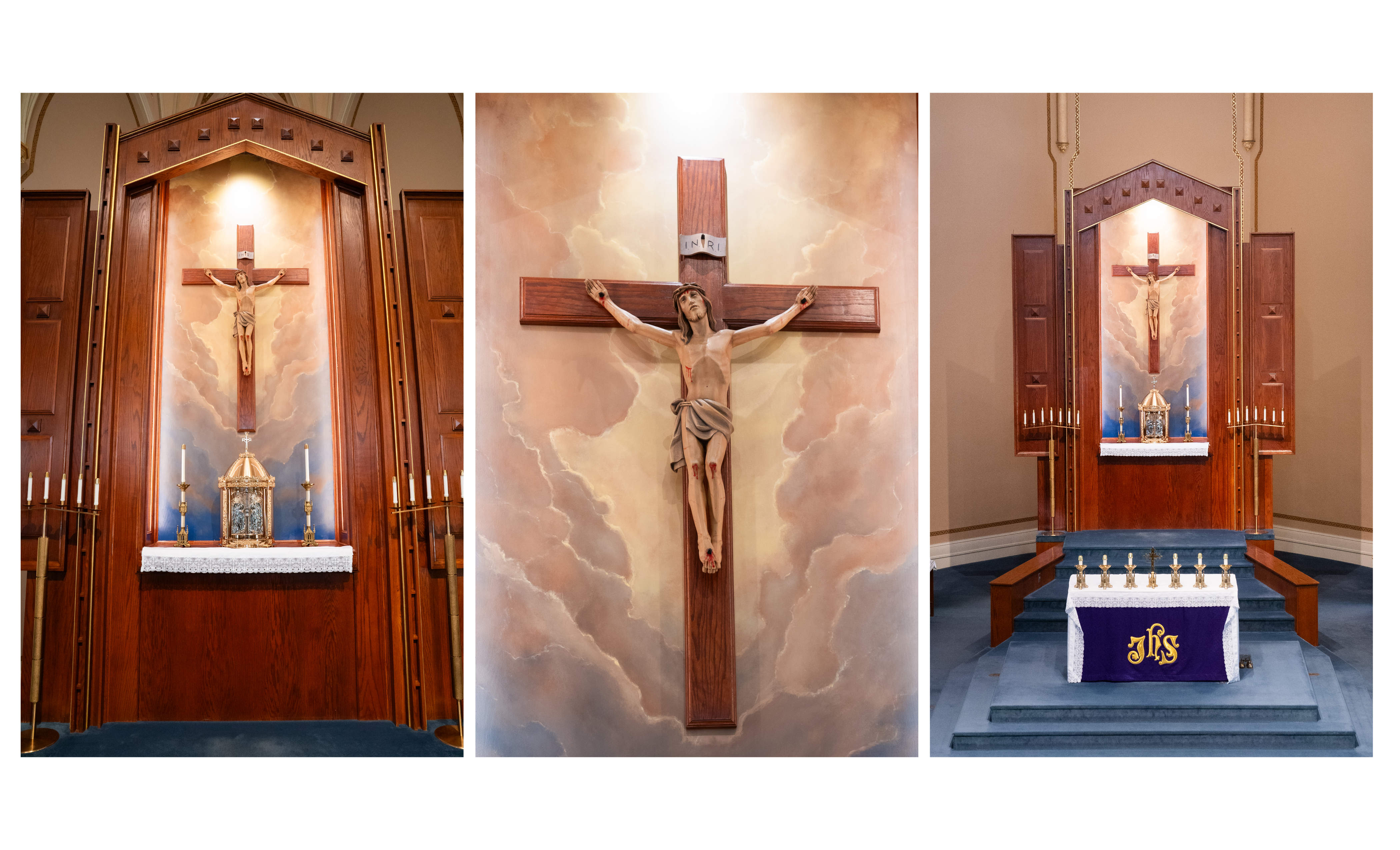 This project has been completed on March 12, 2026 in coordination with the arrival of the new tabernacle. The artwork is intended to draw more attention to the central focus of Christ’s gift to us all.